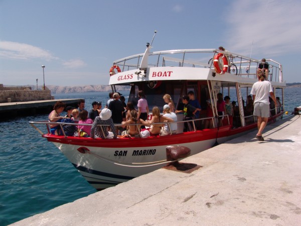 Our tripp starts from the harbour in San Marino (Lopar, island RAB) at 10.30 h and 15.30 h. After a half hour of watching sea bottom, we sail to the well known sandy beaches of Lopar (Stolac, Sahara, Dubac). After a panaroma drive we go to the island of GOLI, which was a political prison islend after world war 2. We make a breake there for one hour, guide you thrue the prison and explane you the history of the island. There is a restoran where you can eat all specialties of the Adriatic food.